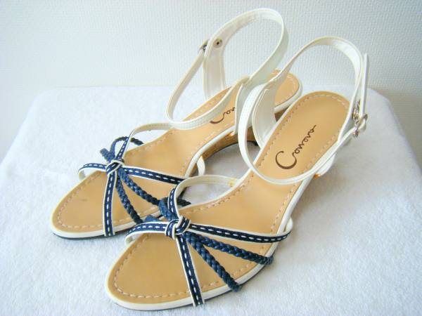 - ◆新品Cowovo マルイ◆日本製 ウェッジソール白サンダルS リボン