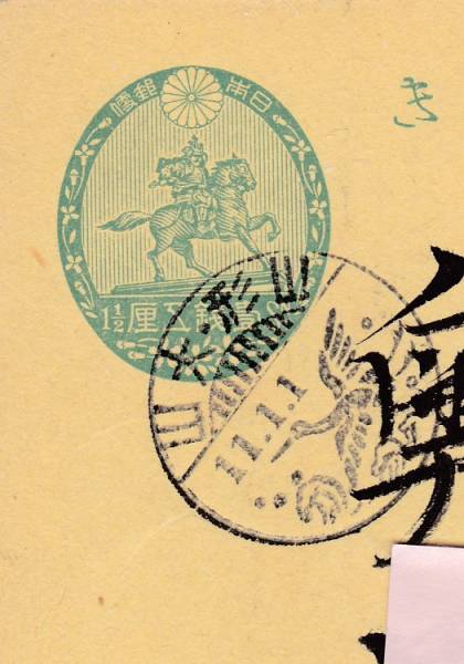 - t2047筍絵入年賀櫛型印/山形・大山/楠公葉書