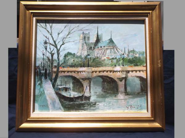 - No158 真作 油彩 1979年Paris〔セーヌ河 ノートルダム寺院〕