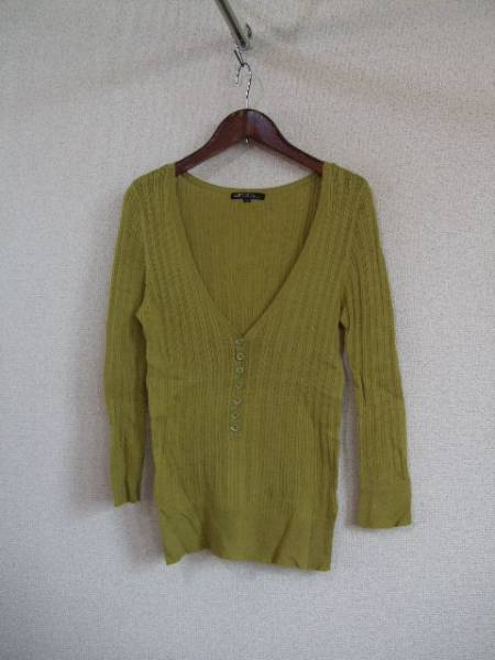 - 23区カーキVネック長袖コットンリブニット サイズ38(USED)50315)