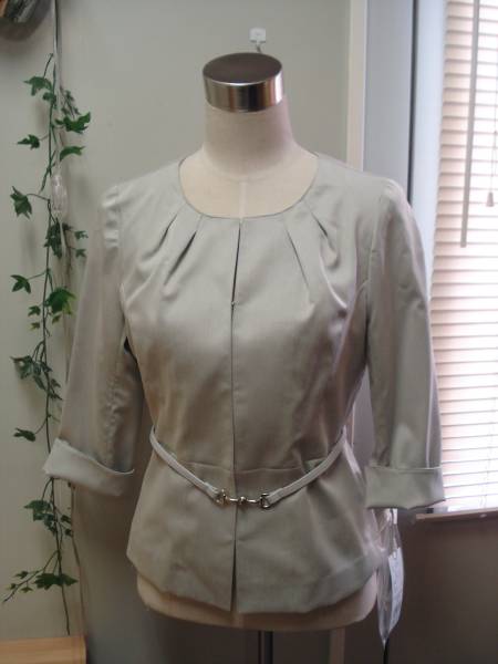 - 新品タグ付◆Mayleaf◆薄手ナローベルト付ジャケット グレー11号