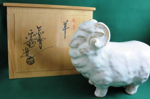 - 送料無料 赤膚 羊 干支 置物 赤ハダ 楽斎 美品