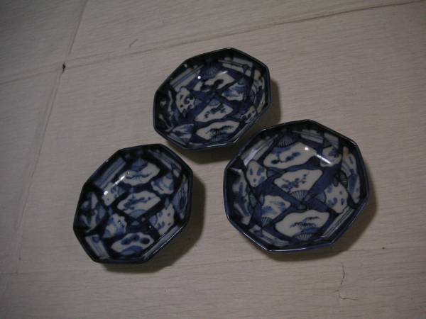 - 染付 小皿 8角形 3枚 無傷 松竹梅