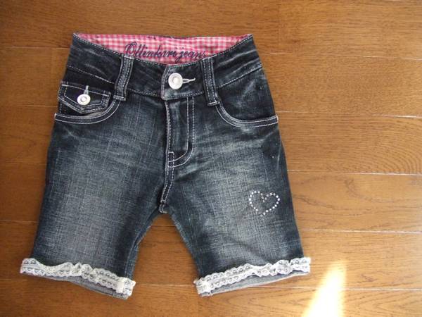 - OLLINKARI*オリンカリ*キラキラ*ハート*レース*ジーンズ*デニム*可愛い*100cm*美品*