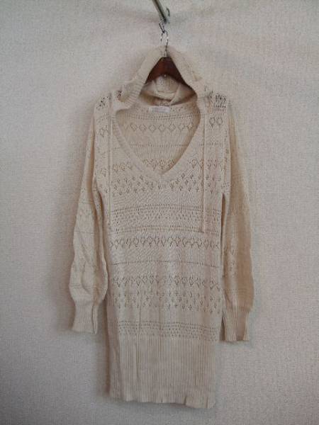 - CINEMACLUB白透かし編みニットパーカーチュニック(USED20215②)
