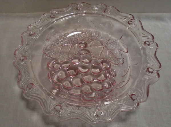 - ★ピンク 葡萄柄 フレア縁 お洒落 ガラス鉢 ガラス皿 盛鉢 ボウル 径28.5cm 硝子 工芸品 レトロ★