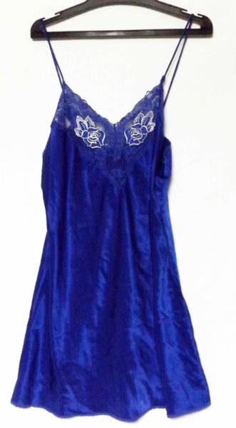 - USAヴィンテージ/ネグリジェレース&サテンブルー紺花019