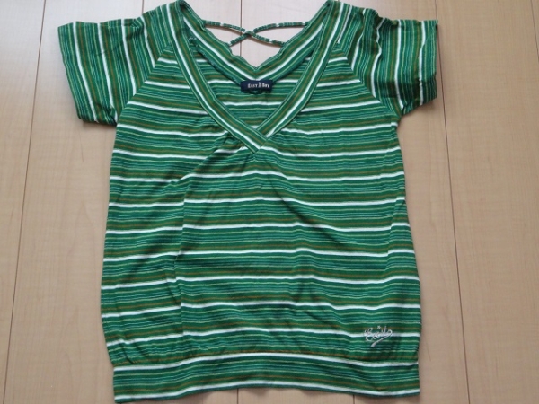 - ⑪used★EAST BOY半袖トップス★緑色ボーダー・9号