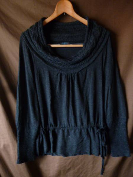 - ◆◆(ethic) ニット切替袖襟付きカットソー M (グレー)C13