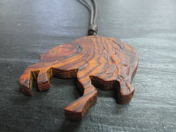 - ココボロオイルフィニッシュ闘牛正面動物彫刻ペンダント