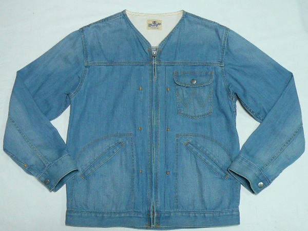 - 美品MonkeyTime別注Wranglerラングラー[DenimJacket]11MJZ襟無し麻混デニムジャケットM(38)UsedWash\17600