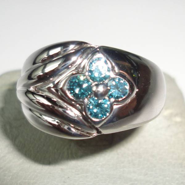 - 送料無料 pt900ブルーダイヤ4石0.36ctリングサイズ12.5号used 質屋出品