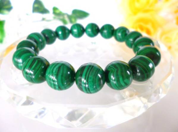 > ☆平和☆長寿★繁栄☆魔よけ★孔雀石☆ ☆高品質AAA☆ ☆マラカイト☆ ☆大珠12mm☆ ☆17cm☆