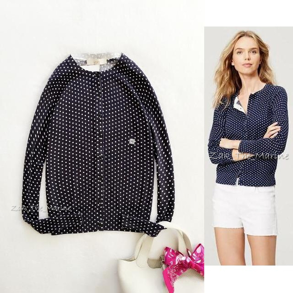 - 新作 アンテイラー LOFT 紺 ドット 水玉 カーディガン M