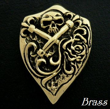 - 真鍮製シールド スカル髑髏ブラス コンチョ/財布や革ブレスのカスタムに