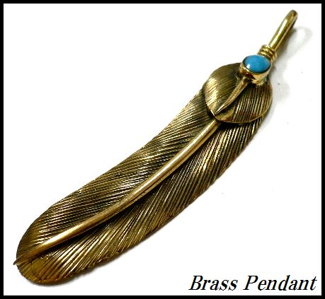 - 真鍮製Brassターコイズ付 ロング フェザー ブラス ペンダント/ブラスアクセALL30%OFF