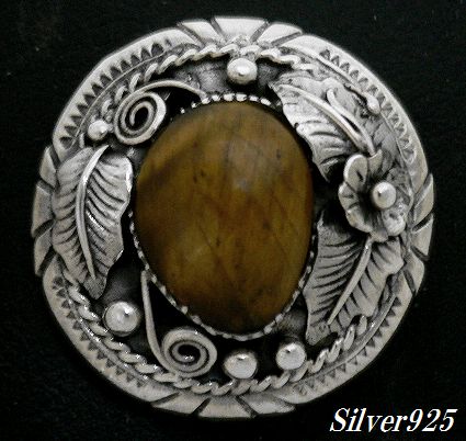 - シルバー925銀のインジュ風 天然石タイガーアイ付コンチョ/ALL20%OFF