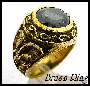 - 真鍮製Brassサイドトライバル多面カットオニキス付ラウンド ブラス リング/17号.19号.21号.23号より