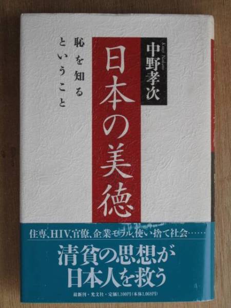 - 平成8年 中野孝次 『 日本の美徳 』 初版 帯 恥を知るということ 清貧の思想が日本人を救う