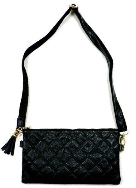 - 牛革アーガイル柄ショルダーバッグ黒/クラッチバッグにも◎ストラップ付