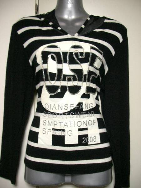 - ★春物処分値下げ★海外品インパクトおしゃれ黒×白ボーダーストレッチ素材カットソーフードネット網M~L細見え★切手★