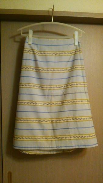 > ヒューマンウーマン 巻きスカート ラップスカート フレアー ストライプ ボーダー ブルー 青 上品 可愛い系 カジュアル かっこいい系