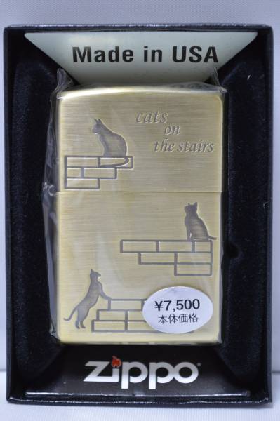 > Zippo ジッポー オイルライター ソリッドブラス Cats on the stairs 猫 キャット
