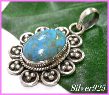 - シルバー925銀の天然石ターコイズ ペンダントtypeQ/ALL50%OFF