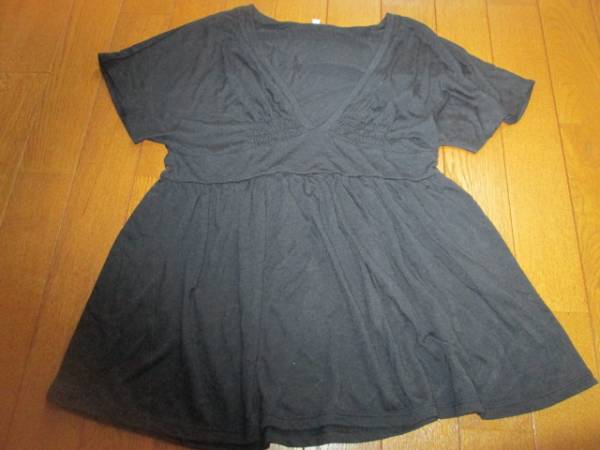 - M 良品計画 黒半袖カットソーチュニックタイプ