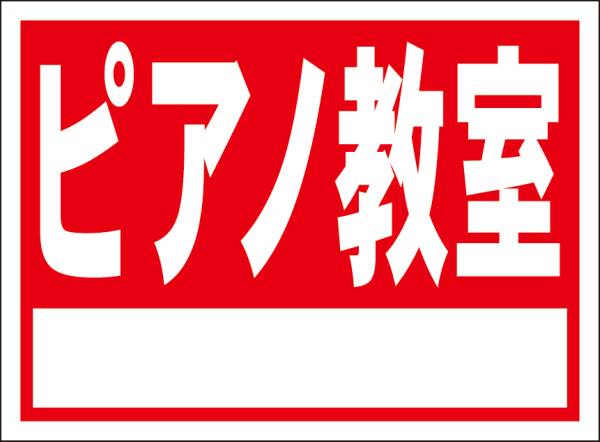 - シンプル看板「ピアノ教室(赤)白窓付」メール便可・屋外可