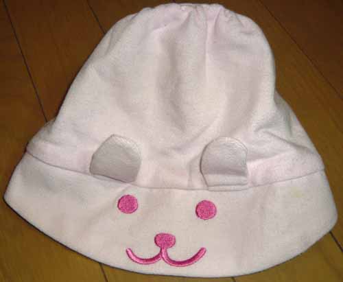 - ◆送料無料◆ ベビー帽子☆ ピンクうさぎ☆ 綿100% 【ユーズド】 50~70