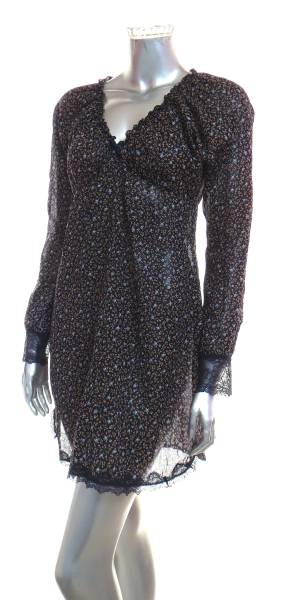 > 二点落札で送料無料! J048 イタリア製 JOELLEジョエル 綿 100% ネイビー 花柄 長袖 チュニック ワンピース S レース コットン