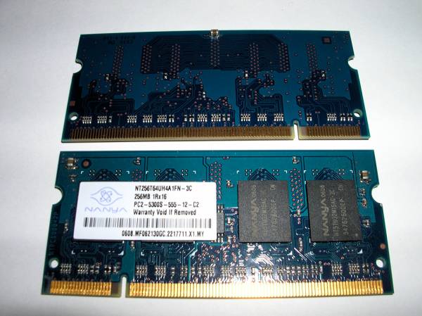- Nanya NT256T64UH4A1FN-3C (256MB 1Rx16 PC2-5300S-555-12-C2)(2枚組・合計:512MB)