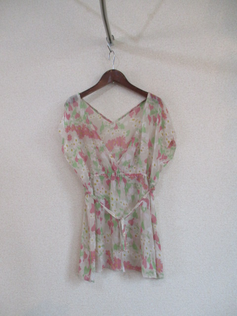 - pastelmaamベージュ地花柄シフォンノースリーブチュニック72117②)