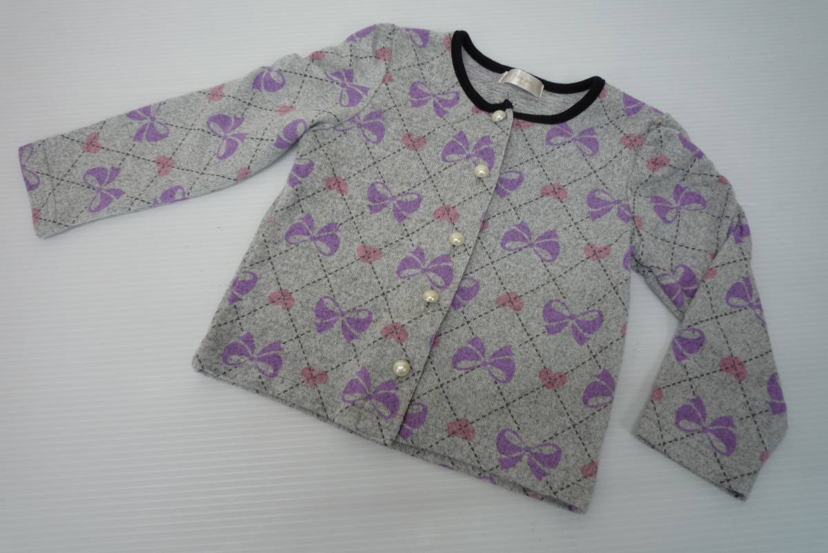 > 【良品!】★le zoo petit★キッズカーディガン サイズ90 グレー リボン柄 女の子