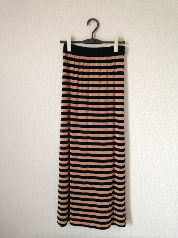 > アバハウス ABAHOUSE◆サラサラアセテート50%素材 ベージュブラック ボーダー マキシ ロングスカート
