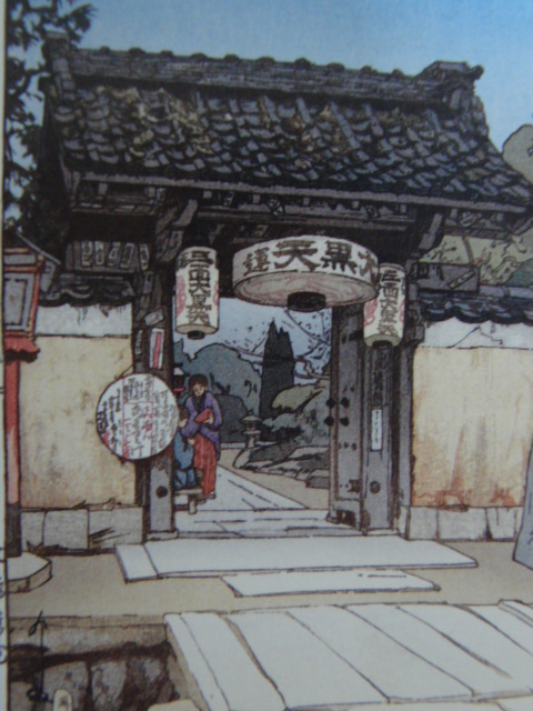 - 吉田博、【文之助茶屋】、希少画集画、高級新品額・額装付、状態美麗、送料無料
