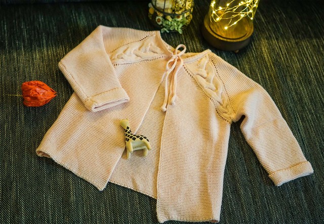 - 桜色/ピンク★ ベビー服/キッズ服/子ども服 【綿】長袖ニットカーディガン/肩掛け★90cm