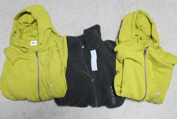 - ユニクロサイズでマスタードM&LカーキグリーンフリースS未使用品