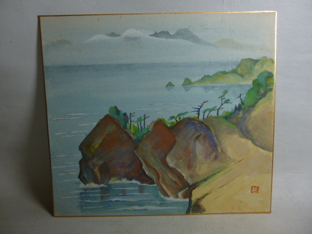 - 旧家から 翠月 弥津武雄 色紙 「南伊豆 黄金崎付近の図 」