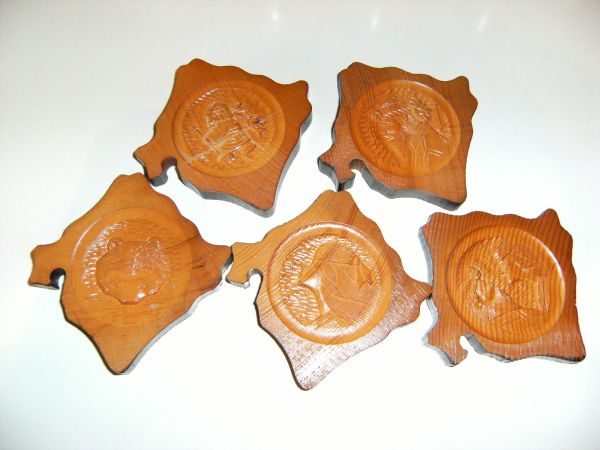 - 昭和レトロ★ビンテージ★80年代★北海道 木彫り コースター 5個セット★先住民 アイヌ民族 熊 クマ