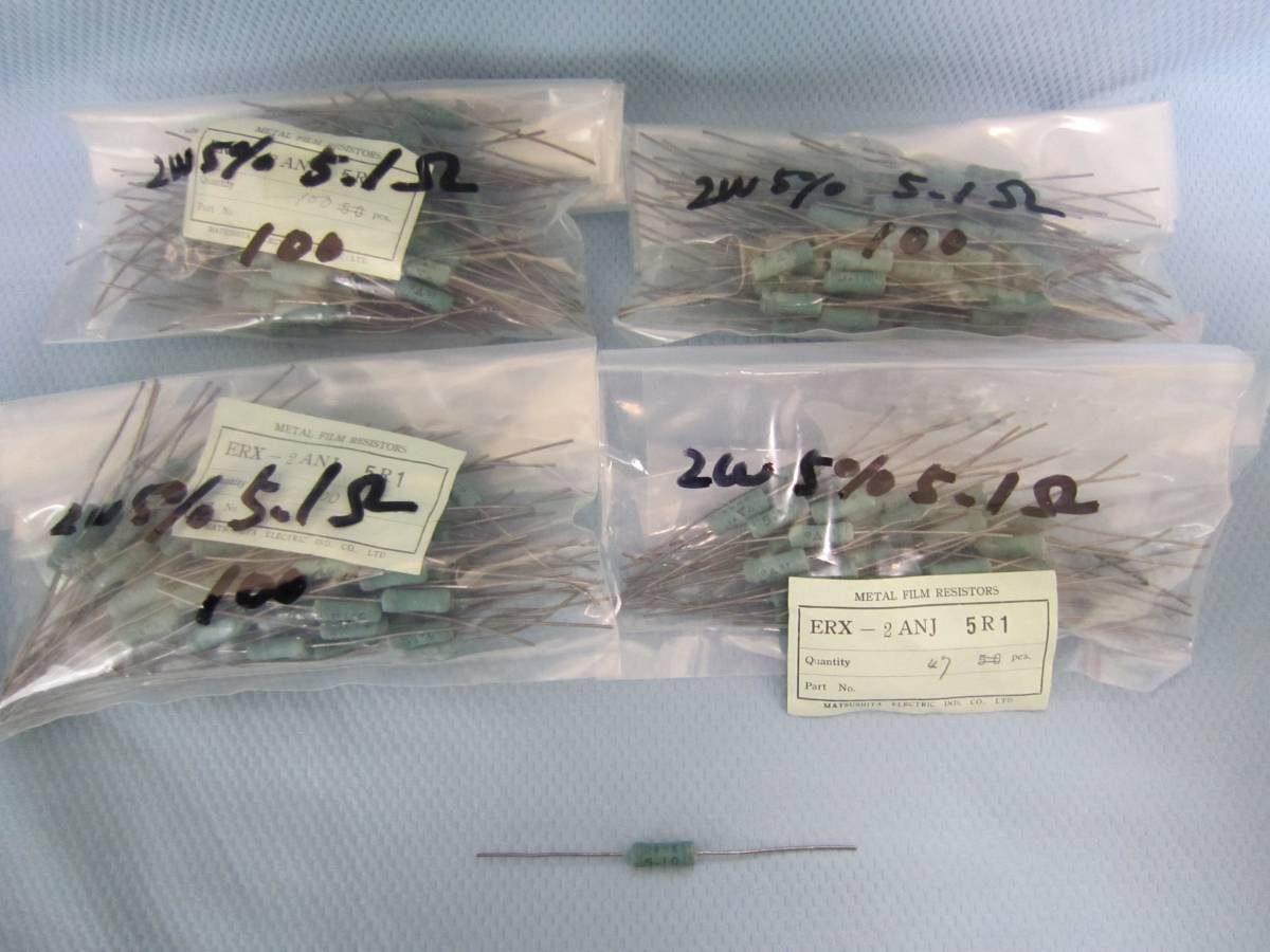 - 固定抵抗、巻線抵抗器、 金属膜抵抗器、2W 5% 5.1Ω ERX-2ANJ 5R1 METAL FILM RESISTORS *347個