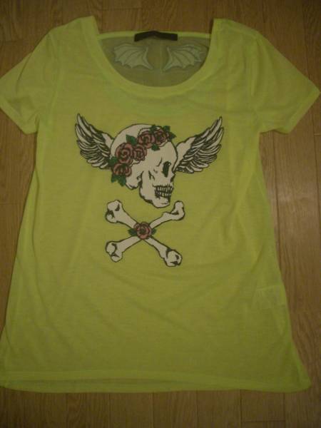 - 即決☆未着☆glad news グラッドニュース ♪スカル薔薇バックwing羽プルオーバー♪ネオンカラー