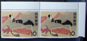 > 昔懐かしい切手4枚組 切手趣味週間「三十六歌仙絵巻 伊勢」2枚 1960.4.20発行+国際文通週間「東海道五十三次・京師」2枚 1958.11.1発行