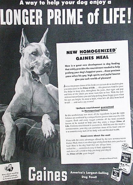 - 稀少!1952年ゲインズ広告/Gaines/グレートデン/犬/Dog Food/36