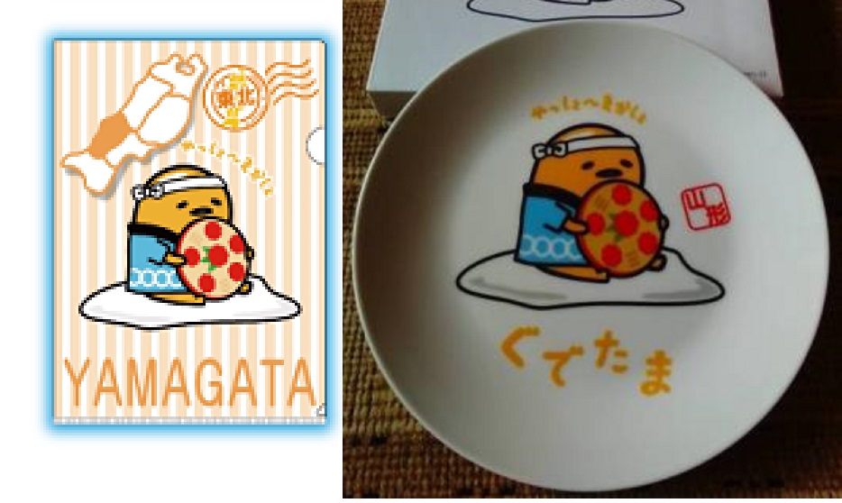 - 253◇ぐでたま 山形 花笠 クリアファイル プレートセット ご当地 イオン ion 限定 初期 希少 非売品 コラボ 皿 Gudetama サンリオ Hanagasa