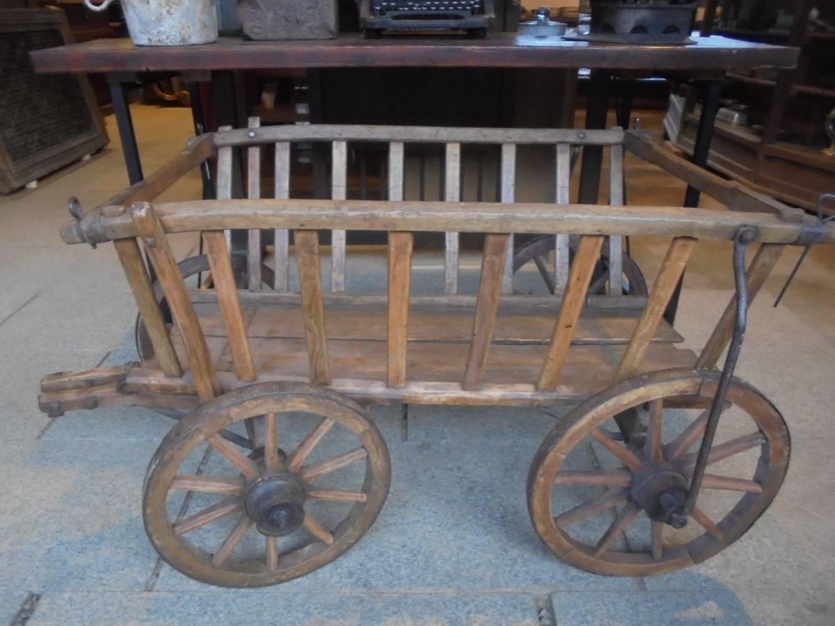 - 【100年前の英国アンティーク荷車】オールドチークアイアントロリートロッコ古道具インテリアインダストリアル骨董ガーデニング木製台車