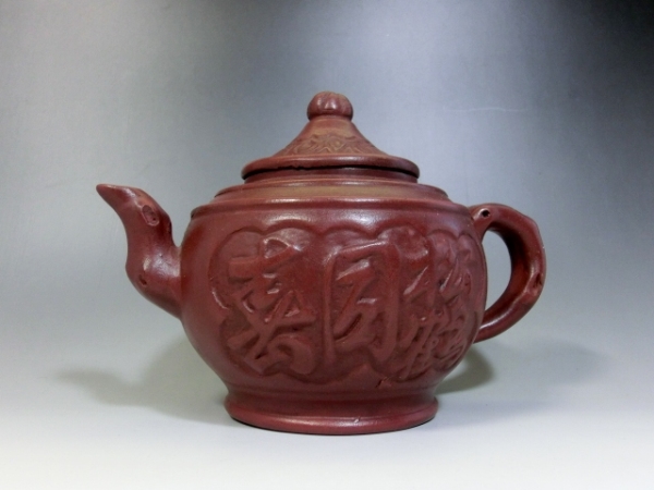 > 急須■朱泥 松鶴国寿 後手茶瓶 茶器 茶瓶 古いお茶道具 骨董品 古美術■