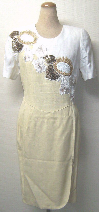 > 値下★excellence マダム花井★イタリア製生地・ビーズ・スパンコール・フラワー刺繍・ドレス・ワンピース・9号