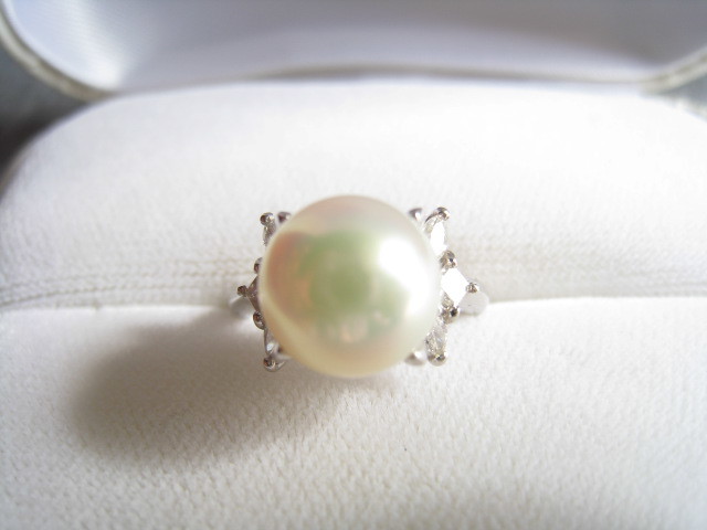 - [SAMU]極美!!照り抜群あこや真珠9.5mm 絶品ダイヤモンド0.31ct Pt900指輪★重さ6.53g!